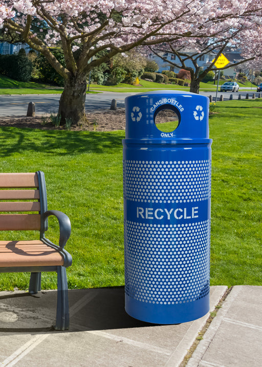 Outdoor Recycling Solution The Ex-Cell Landscape Series Recycling Receptacle with Dome Top is designed for high-traffic public areas. Made from hea...